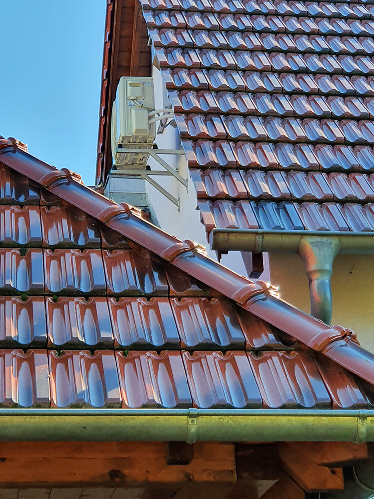 Diese Systeme sollten mindestens einmal jährlich gereinigt werden, um hartnäckige Ablagerungen von Schmutz und Laub zu vermeiden. Sonst wird das Abfließen des Regenwassers verhindert. Eindringende Feuchtigkeit kann zu starken Schäden an Dach, Wand und letztlich auch an der Bausubstanz des Hauses führen.